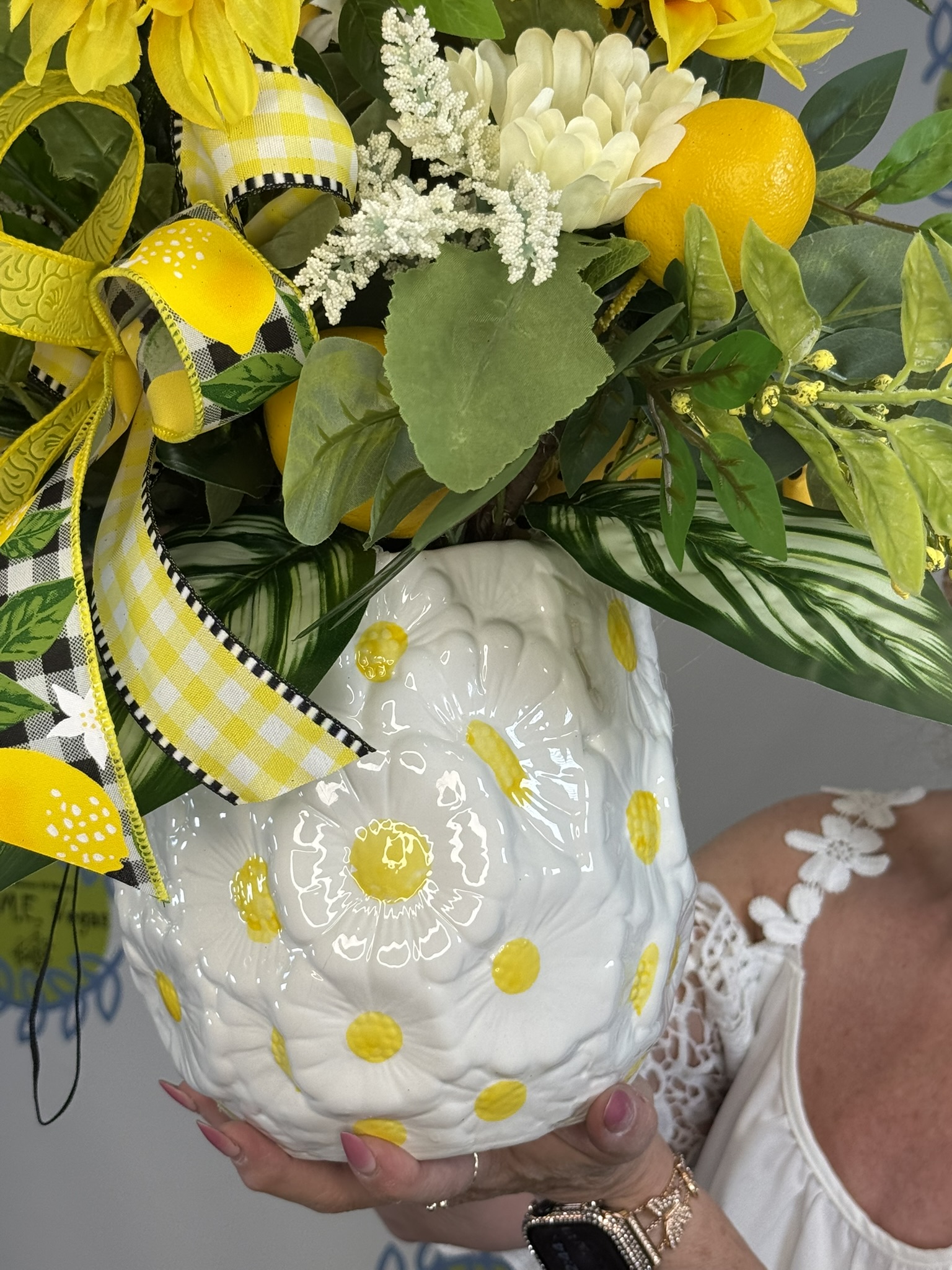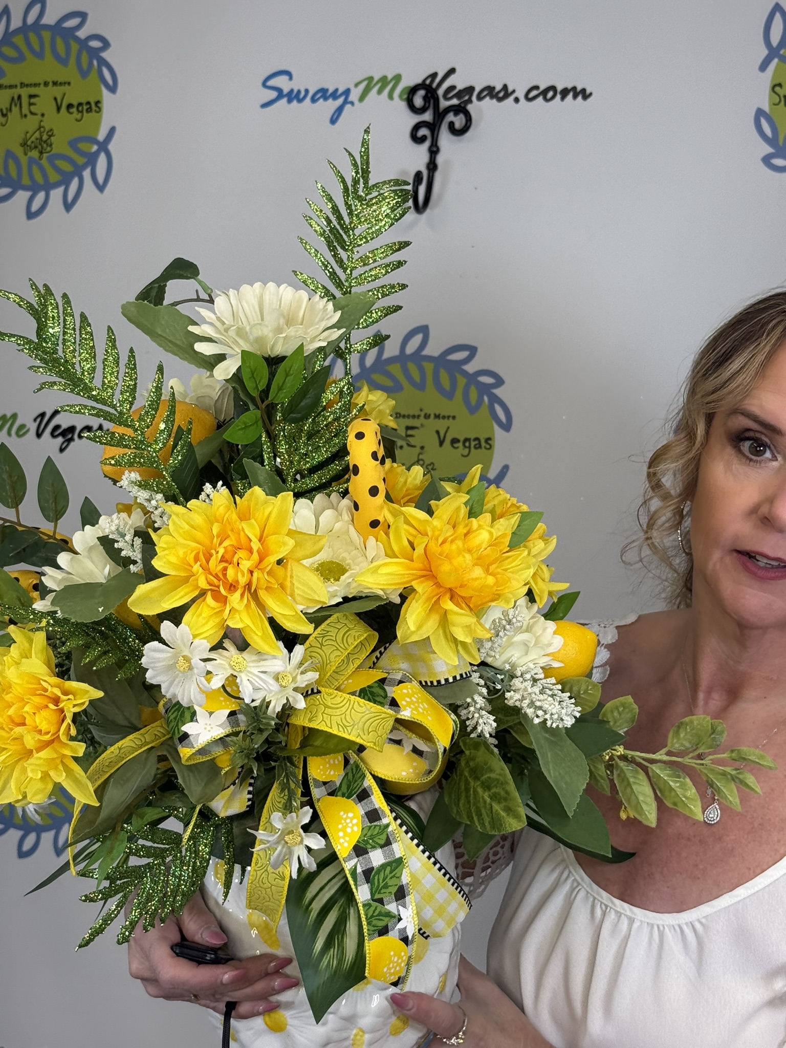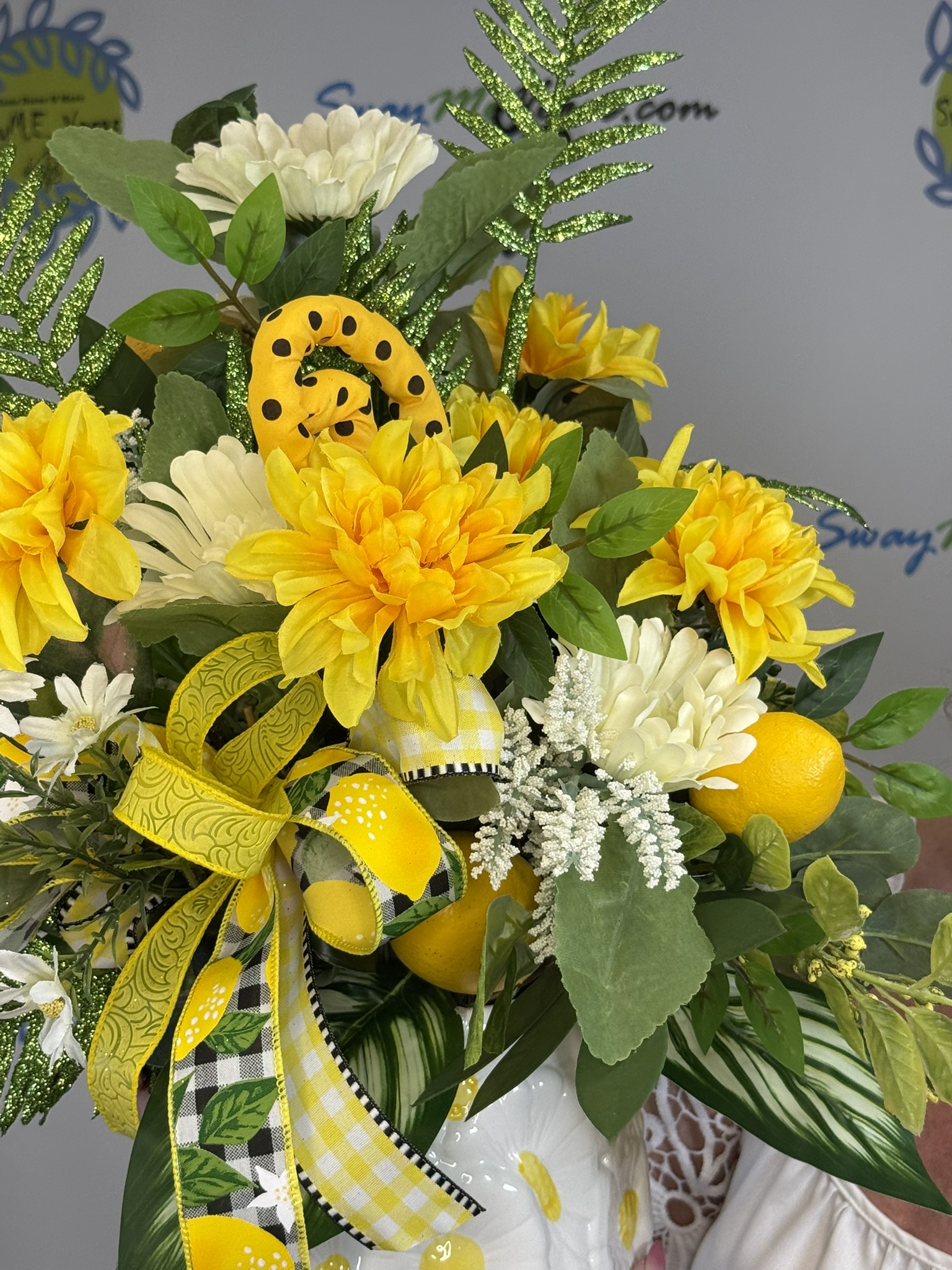 This lemon and sunflower centerpiece is designed to bring that clean, sunny, feel-good energy into your home. Featuring vibrant yellow florals, realistic lemon accents, and lush greenery, this piece instantly brightens any space it’s placed in.